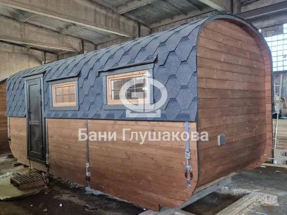 Гибрид «Кареты» и «Буханочки» из одного из лучших на рынке материалов – термированной бочковой доски, – и с утеплённым герметичным полом.