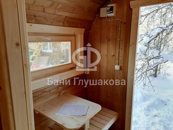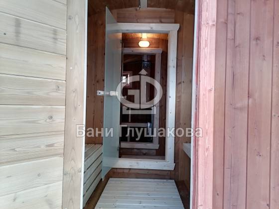 Материал корпуса: Термодерево — это экологичность и долговечность. Оно не боится перепадов влажности и обладает низким коэффициентом теплопроводности, что позволяет бане прогреваться быстрее.
