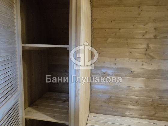 Квадратное сечение (квадро) дает заметно больше внутреннего объема и высоты потолков по сравнению с классическим кругом, поэтому внутри дышится легко и места хватает всем. Баня уже укомплектована фирменной печью, баком для воды и удобными полками — всё готово к первой протопке сразу после установки на участке.