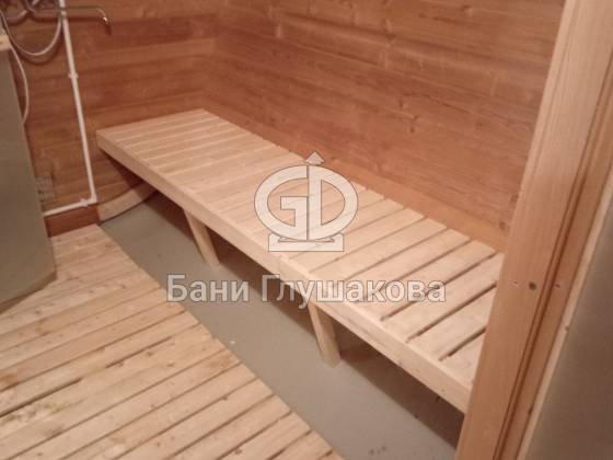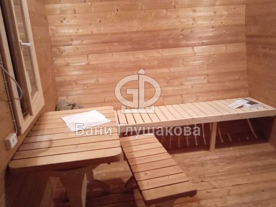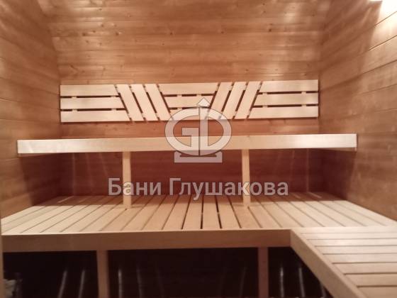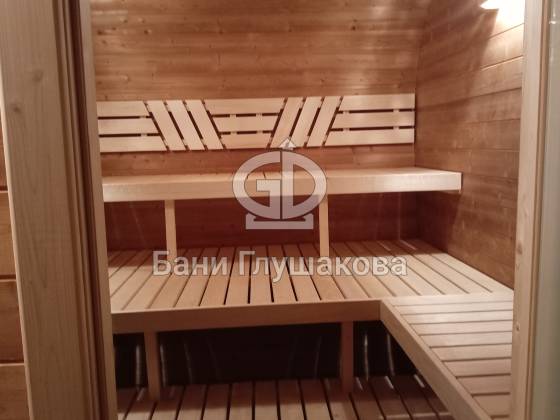 • Просторная парная. Спроектировали удобные многоуровневые полоки с симпатичным дизайном спинок.