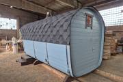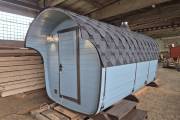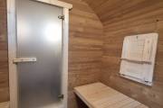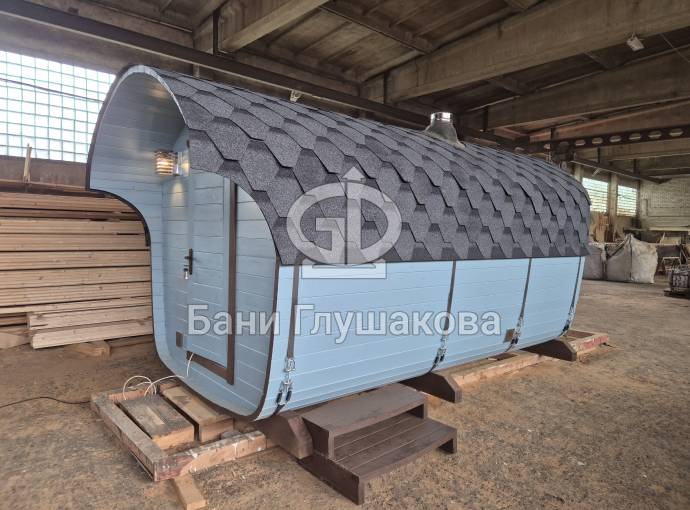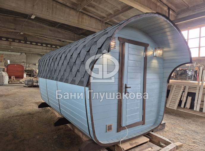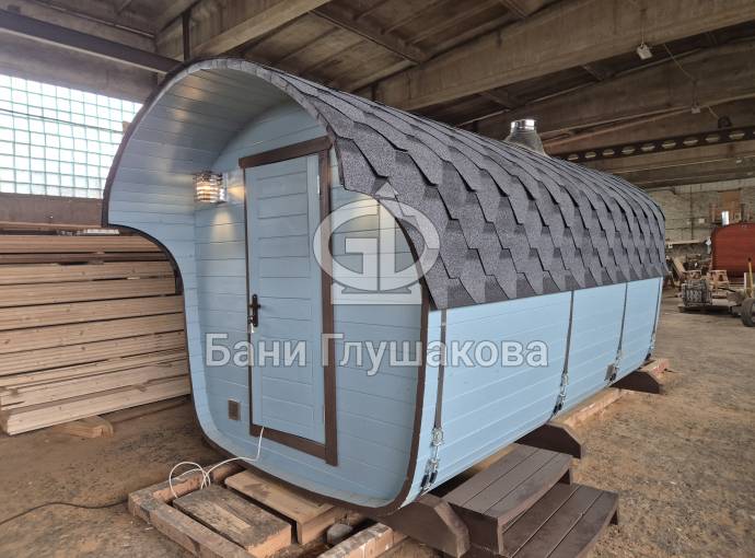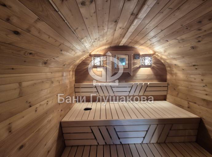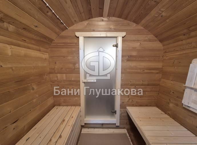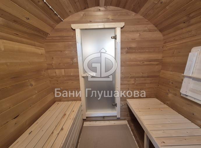 Размер — 2,4 × 4 метра, внутри — два продуманных помещения: комната отдыха и парная. Всё, как нужно, без лишнего.