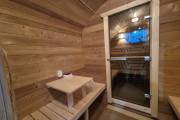 Размер — 2,4 × 4 метра, внутри — два продуманных помещения: комната отдыха и парная. Всё, как нужно, без лишнего.