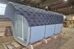 2024 год мы не оставим без новой линейки бань. Рады представить вам «Сказку» – баню-бочку оригинальной формы. Благодаря расширяющейся форме внутри больше места.