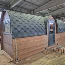 У нас можно заказать баню-бочку в самых разнообразных вариациях, с компоновкой предбанника, душевой и раздевалки на основании собственных предпочтений. Крышу конструкции покрываем мягкой кровлей Технониколь SHINGLAS — 25 лет гарантии от производителя.