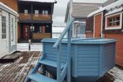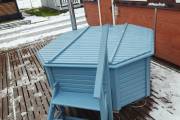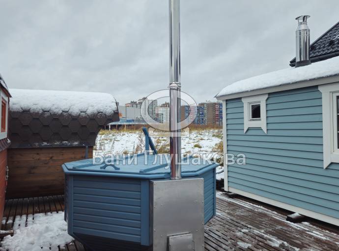 Снаружи купель обшита термомодифицированной вагонкой, которой не страшны сырость и палящее солнце. Материал по свойствам напоминает пластик.