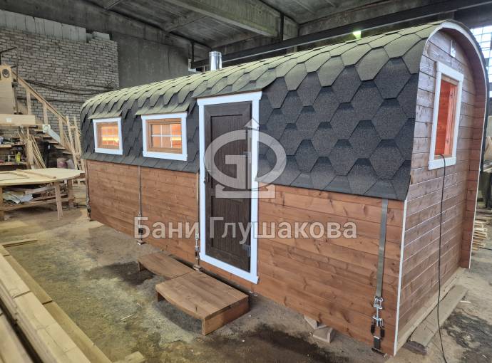 Такой вариант мы делаем впервые, и он обещает стать по-настоящему универсальным: лёгкая, красивая и при этом тёплая баня, готовая к использованию круглый год.