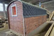 Вашему вниманию предлагаем новинку – перевозную баню «Буханочка» из бочковой термодоски. По сути это гибрид «Кареты» и «Буханочки».