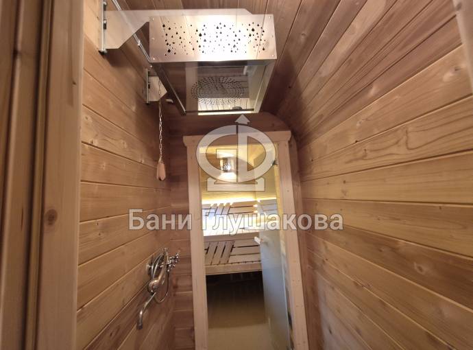 2. Душевое помещение: Оборудовано всем необходимым для гигиенических процедур. Ключевая фишка — установленное обливное устройство, которое подарит незабываемые ощущения от контрастного обливания.