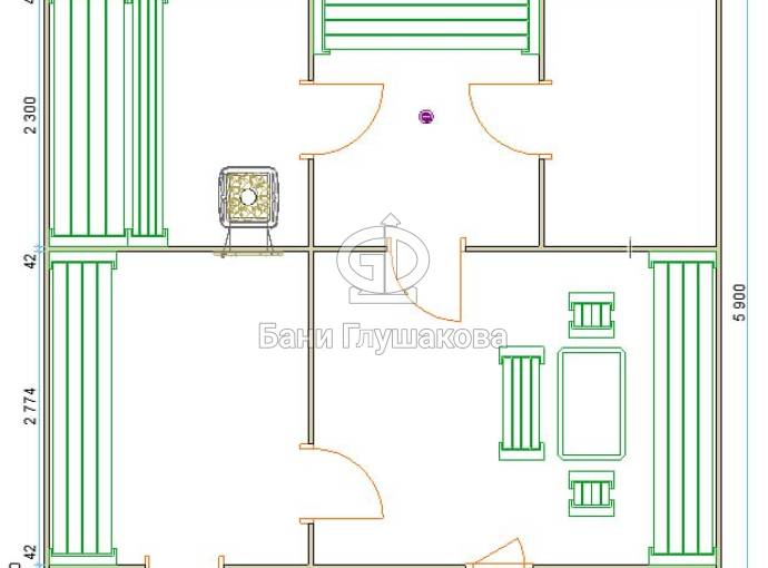 Баня «Буханочка» из бочковой термодоски размером 6 × 5,9 метра — это современное решение для тех, кто ценит комфорт, тепло и практичность в каждой детали. В этой версии проекта предусмотрен удобный предбанник (тамбур), который делает использование бани ещё более комфортным и функциональным.