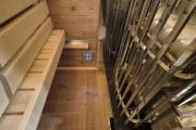 Комплектация топ: неубиваемая мебель, дизайнерская люстра «Тринити», автономная душевая система с бойлером, фрамуга в парной с калёным стеклом, выдвижные полки, вентиляция «Второе дыхание» и вместо «Димасту» новая система трёхконтурного дымохода с подачей тяги, металлический экран вокруг печи и удобные клапаны-задвижки. В общем, эта банька собрала в себе все наши последние улучшалки.