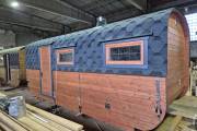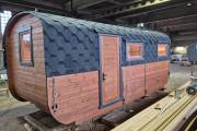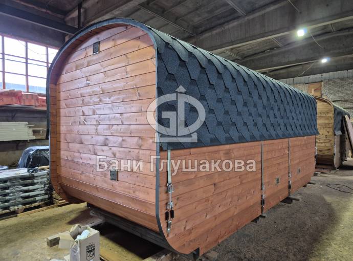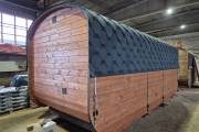 Баня «Карета» – это продвинутая вариация бани бочки, которая изготавливается из бочковой доски. Как правило, большинство бань мы изготавливаем из термомодифицированной доски.
