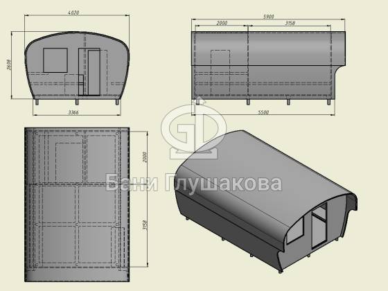 Работая над проектом, мы все больше убеждались в его жизнеспособности. Первый «Танк» получился удобным (более привычная конфигурация в отличие от бань бочек), красивым и по-настоящему оригинальным. После получения разрешения от клиента модель пополнила наш постоянный ассортимент.
